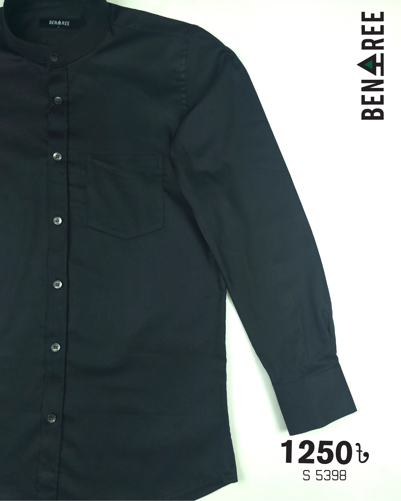 Solid color full sleeve ban collar shirt with styled Metal button and single pocket