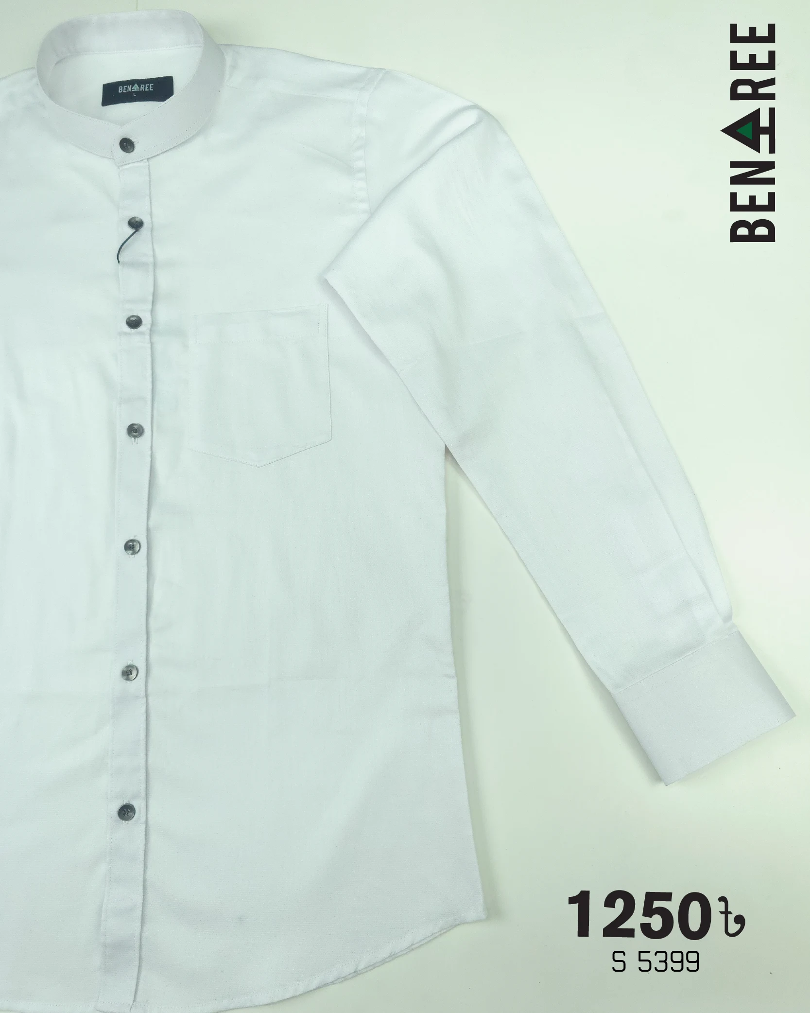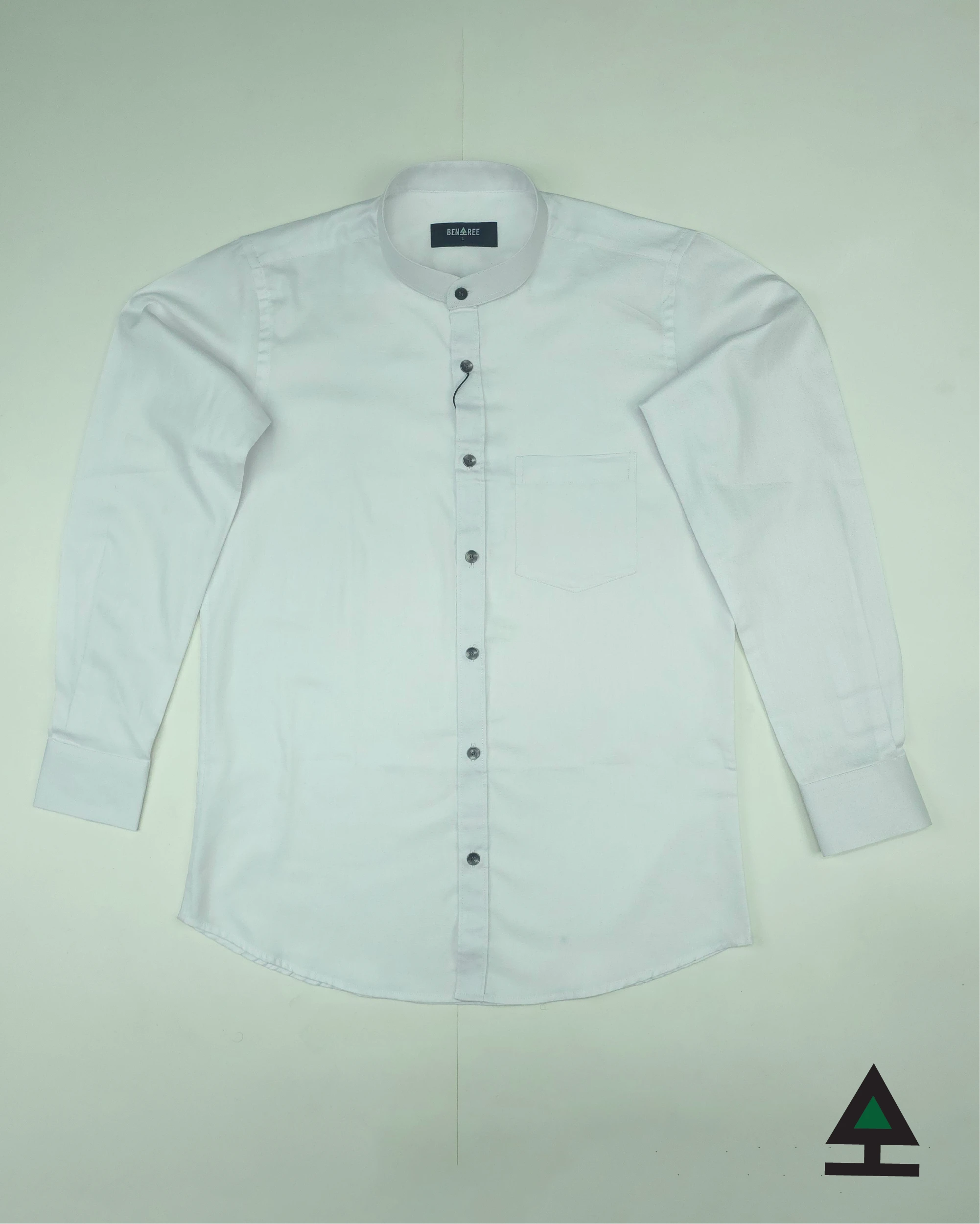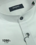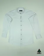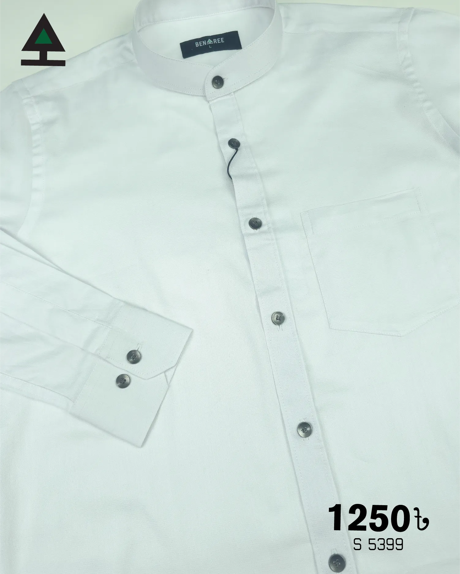 Solid color full sleeve ban collar shirt with styled Metal button and single pocket