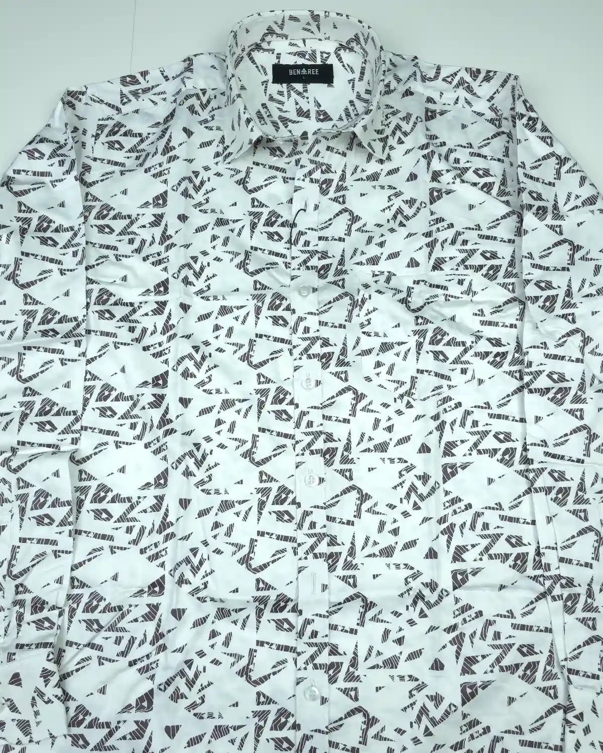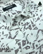 Full sleeve white color casual shirt with dynamic chocolate color print on whole body. Made from imported fine quality cotton fabrics.