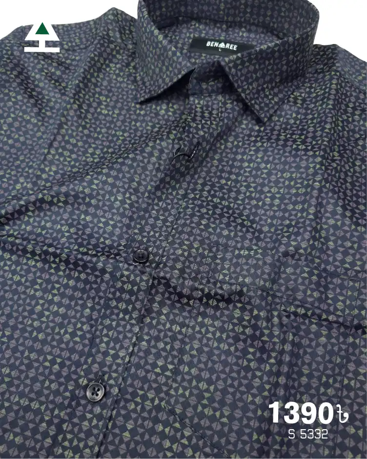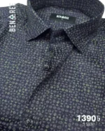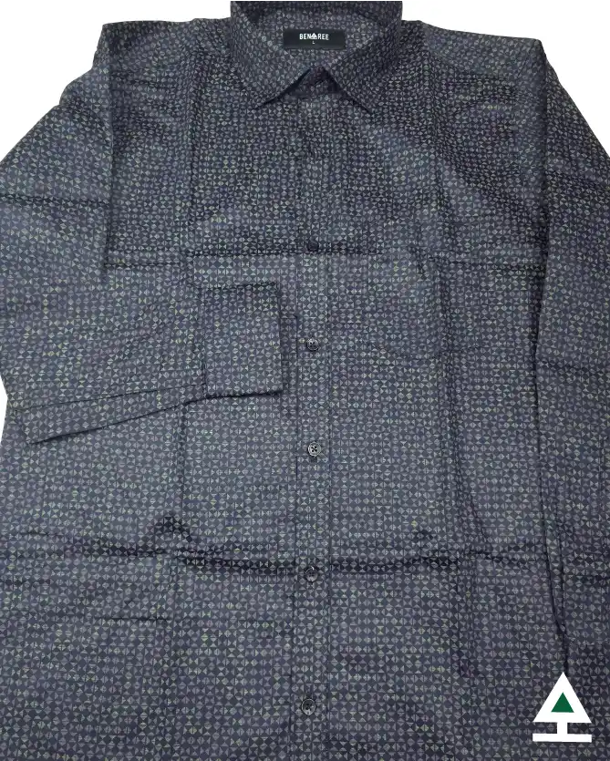Full sleeve deep navy blue color casual shirt with all over print on the body.