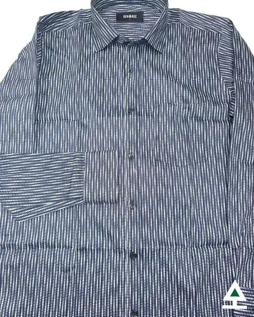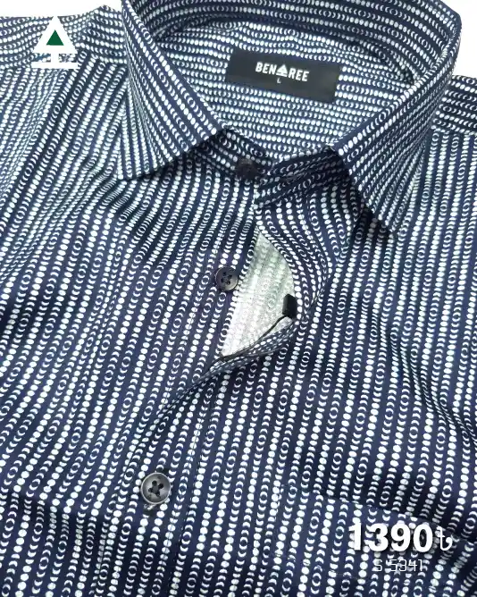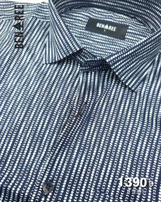 Full sleeve deep navy blue color casual shirt with a stripe of moonshapes on the body.