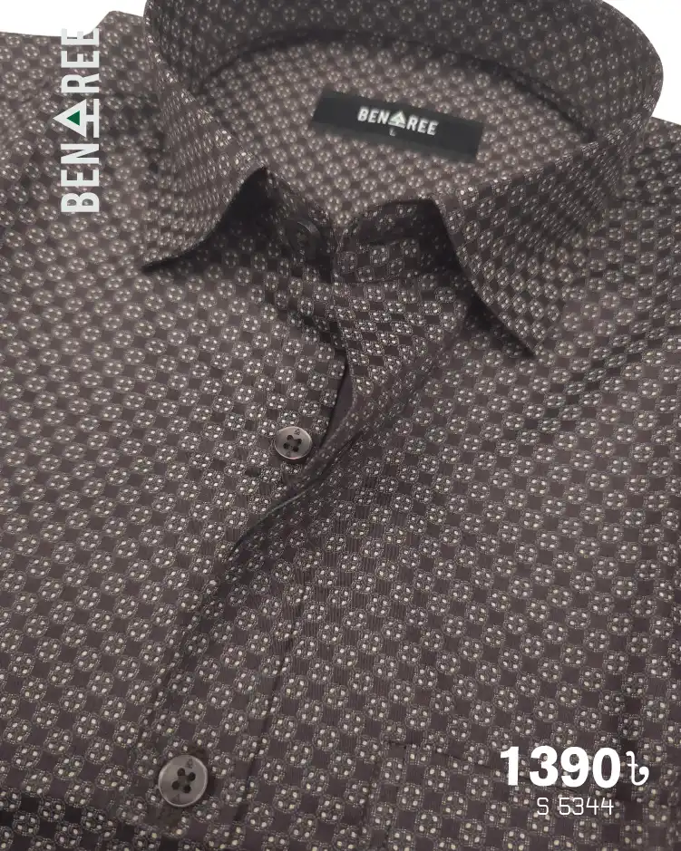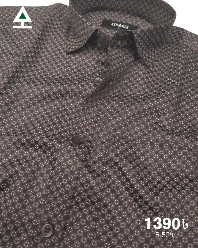 Full sleeve chocolate color casual shirt with all over print on the body.