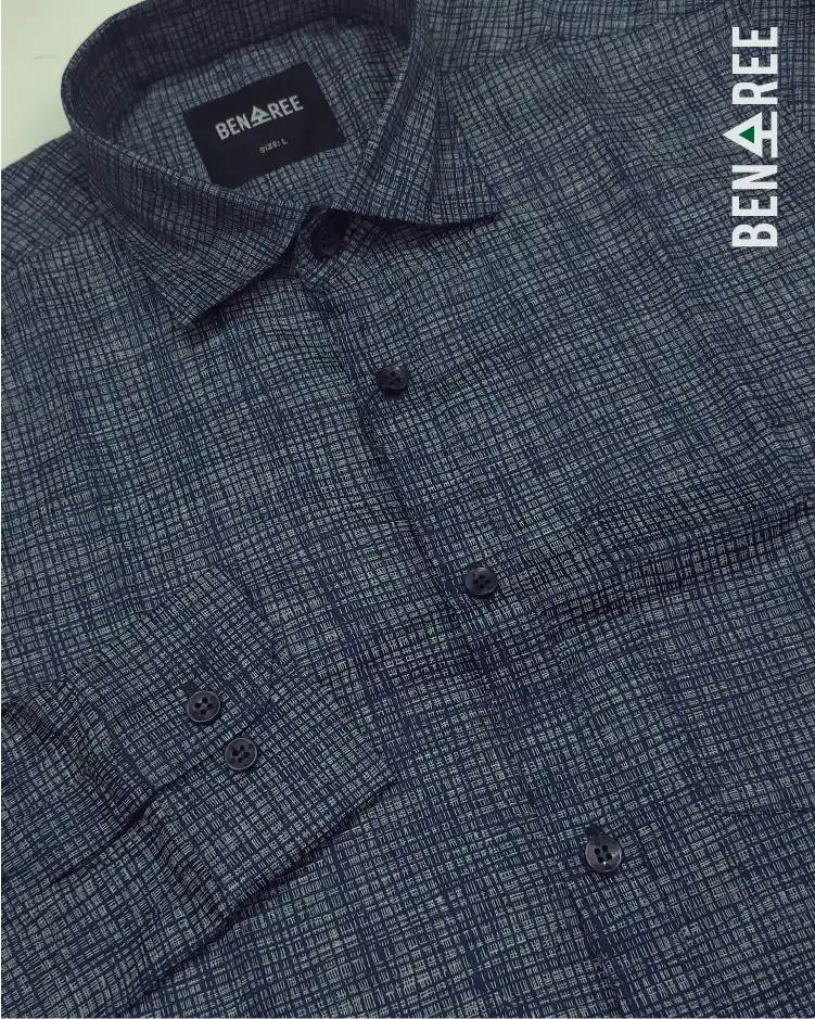All over print on navy blue color full sleeve casual shirt.