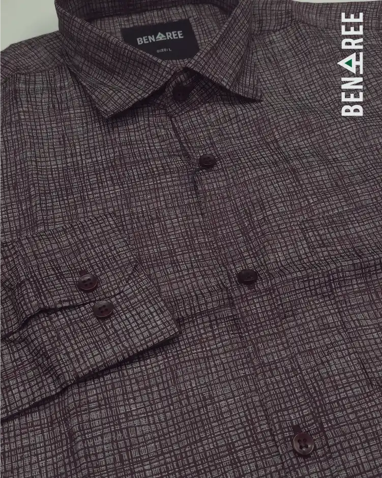 All over print on deep brown color full sleeve casual shirt.