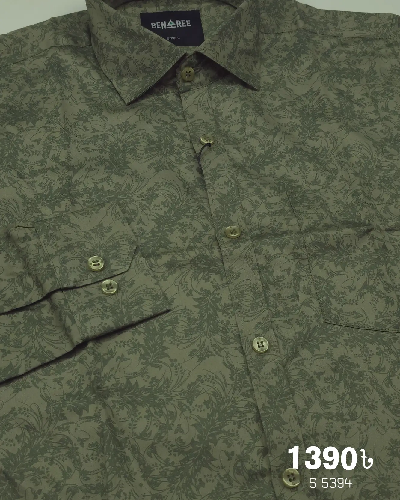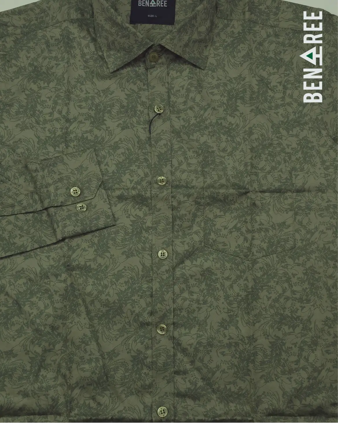 All over print on olive color full sleeve casual shirt.