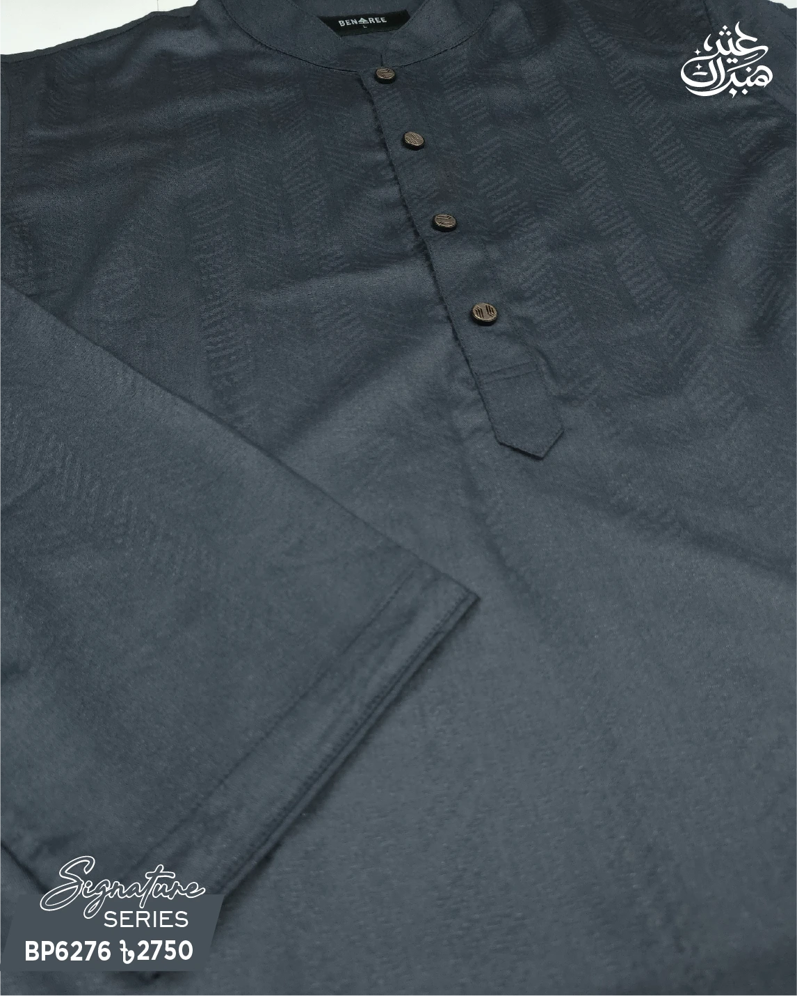This Panjabi uses specially treated cotton fabric to achieve a softer hand-feel, ensuring superior comfort.