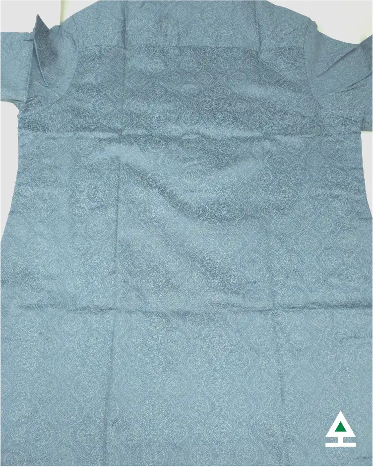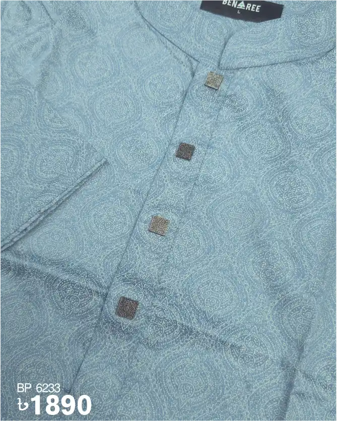 All over print in steel blue color panjabi. Push button which stands out in the plate.