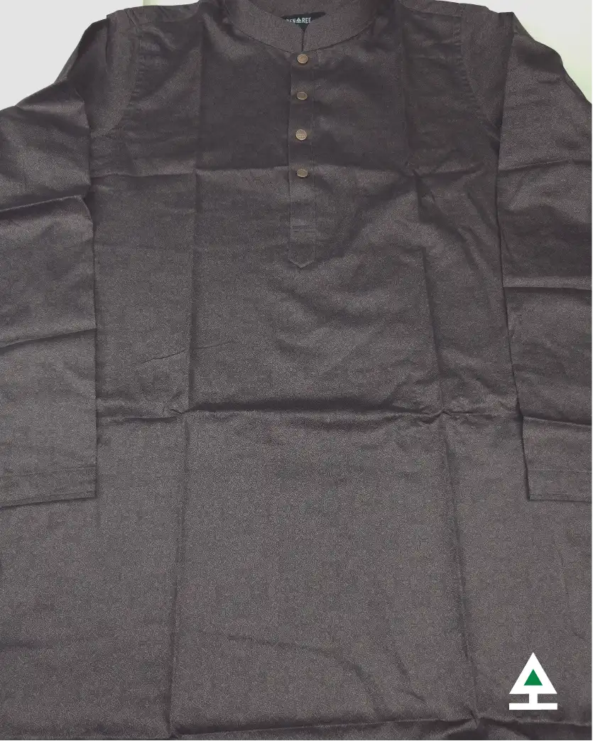 All over print in coffee color panjabi. Push button which stands out in the plate.