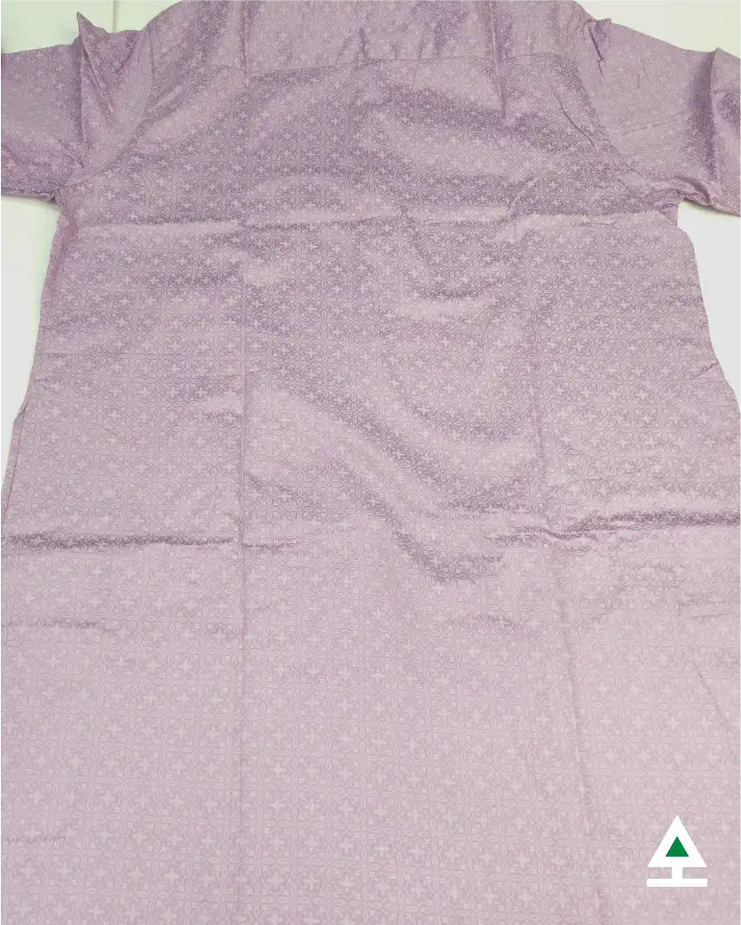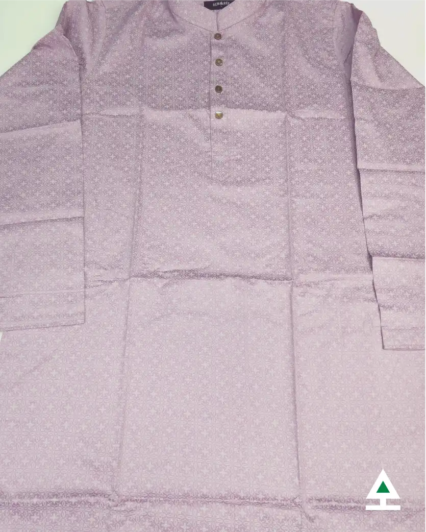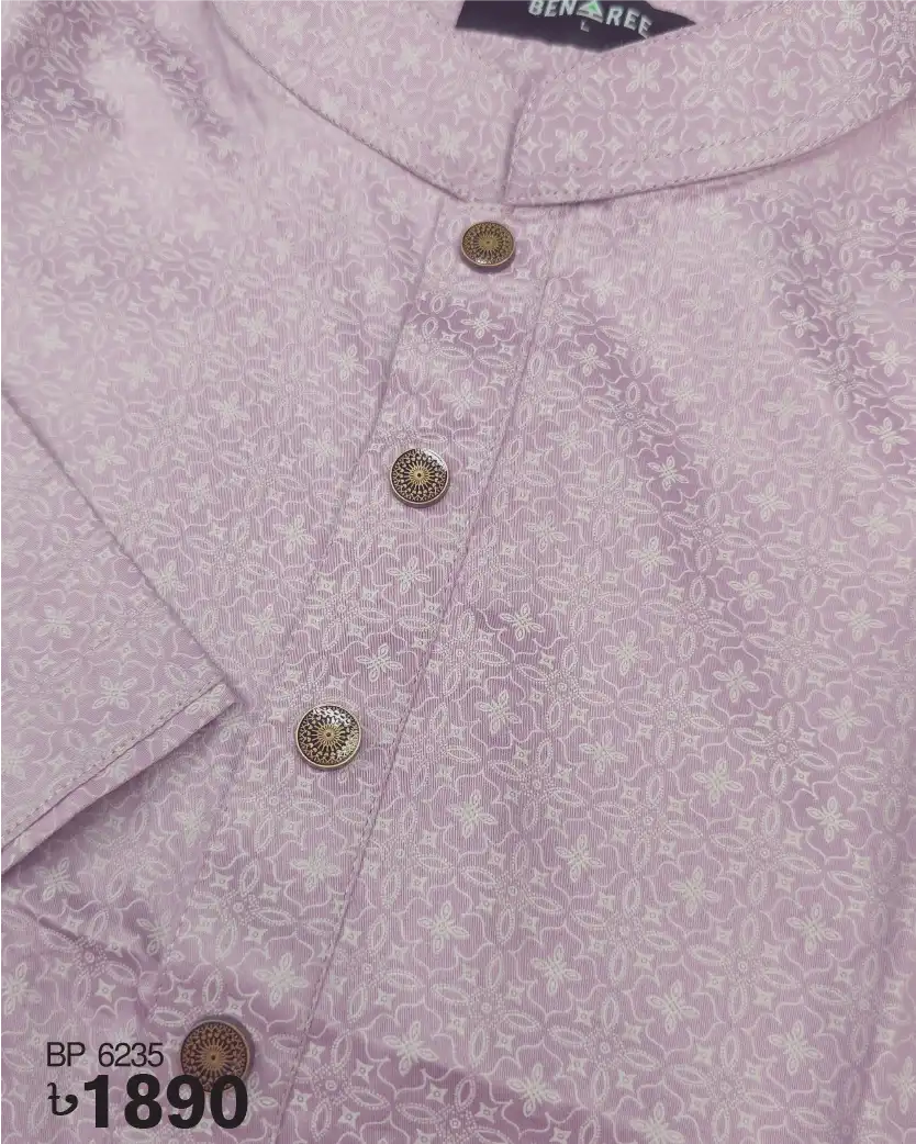 All over print in lilac color panjabi. Push button which stands out in the plate.