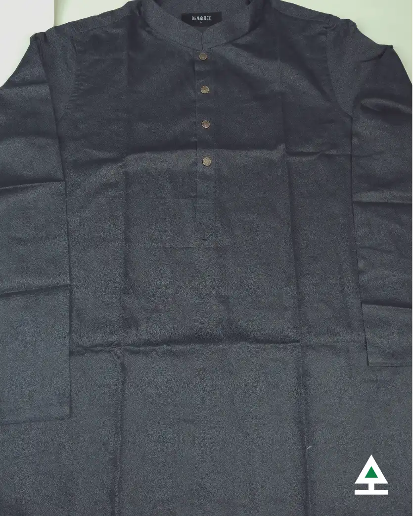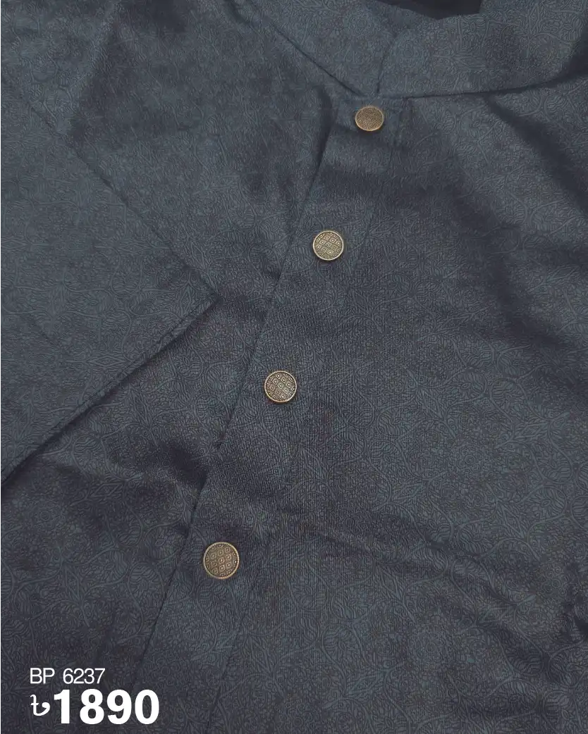 All over print in deep metalic grey color panjabi. Push button which stands out in the plate.