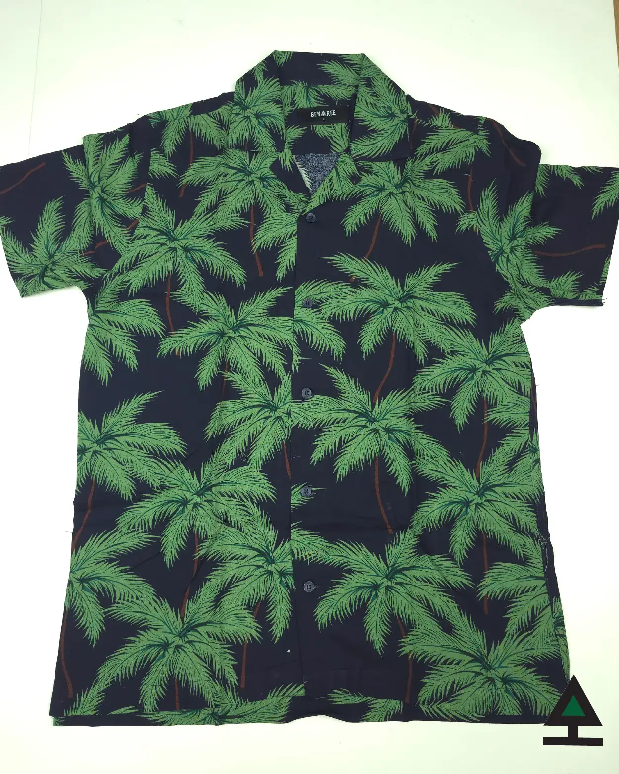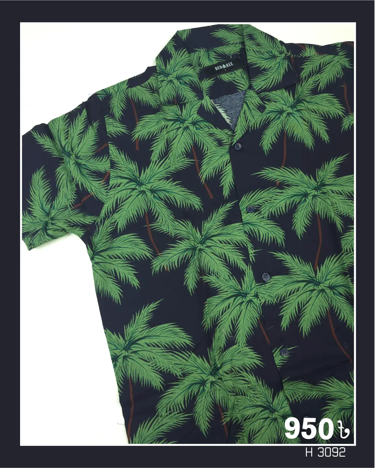 Coconut leaf print on navy blue & green color cuban collar half sleeve shirt