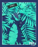 Navy blue & Bluish green color cuban collar shirt made from linen fabric
