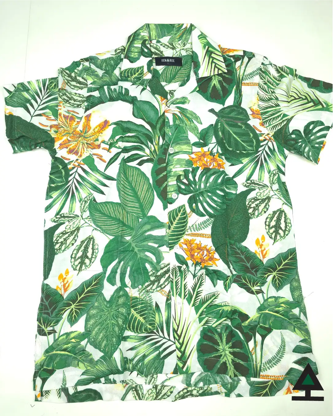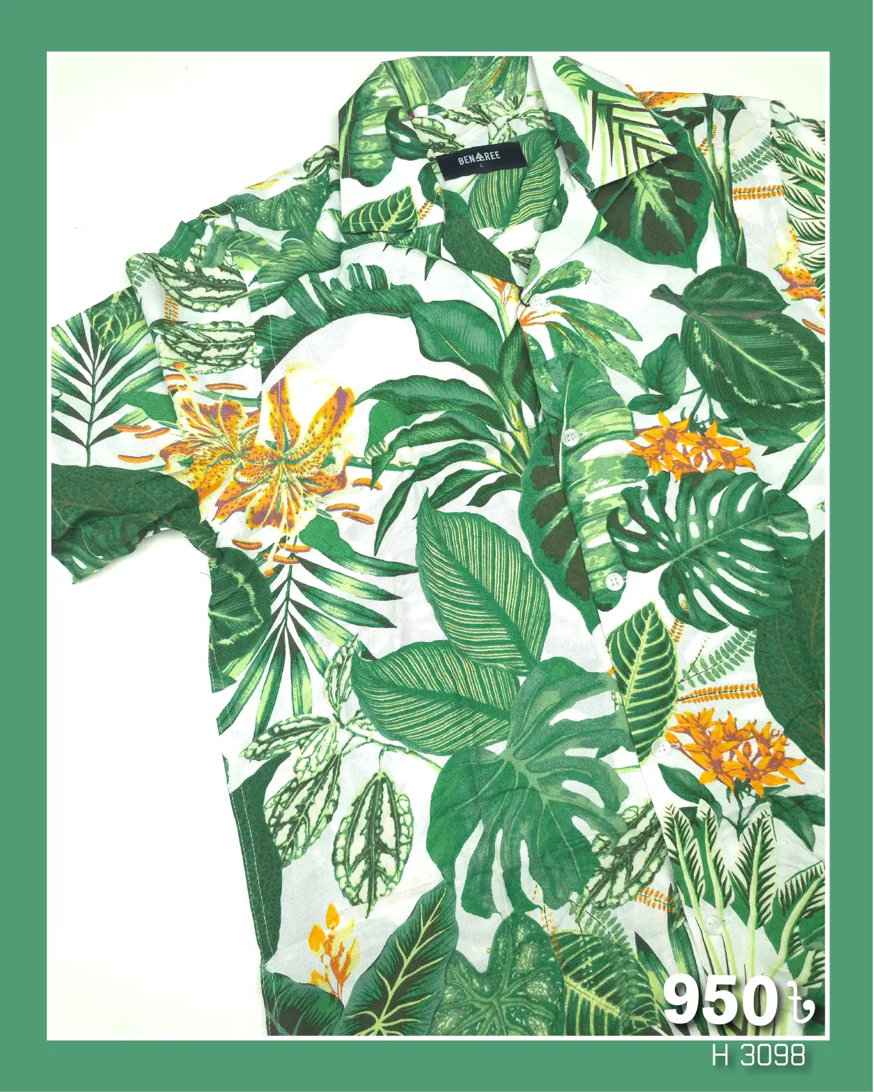 Floral & Leaf designed cuban collar half sleeve shirt.