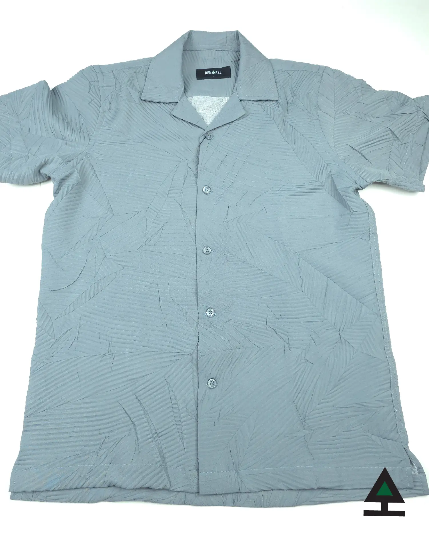 Metalic Grey color cuban collar shirt made with soft crush fabric.