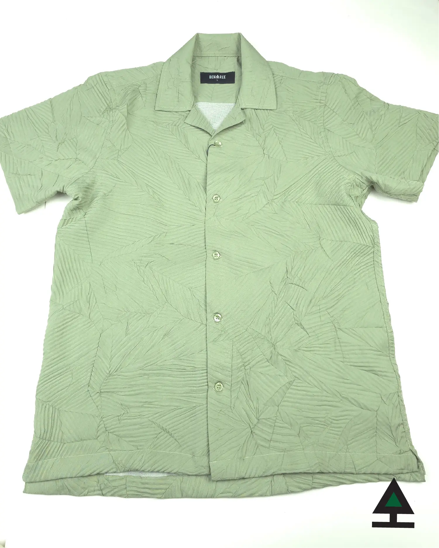 Pastle Green color cuban collar shirt made with soft crush fabric.