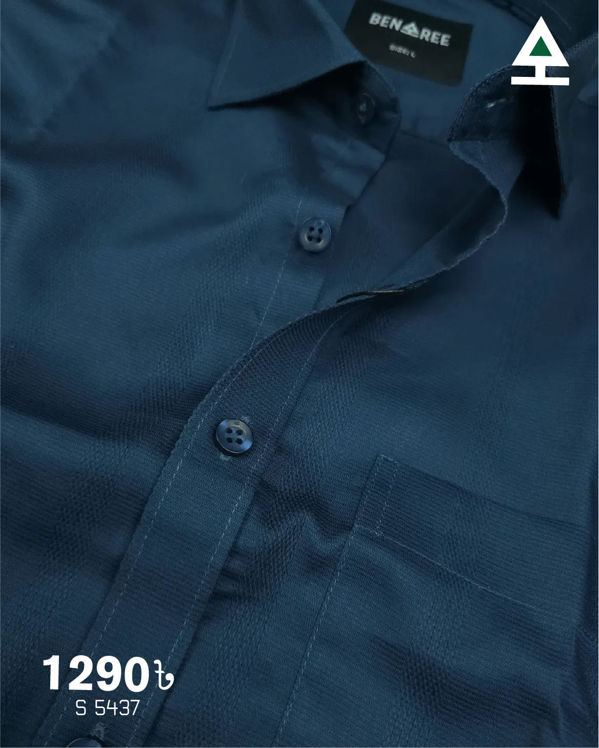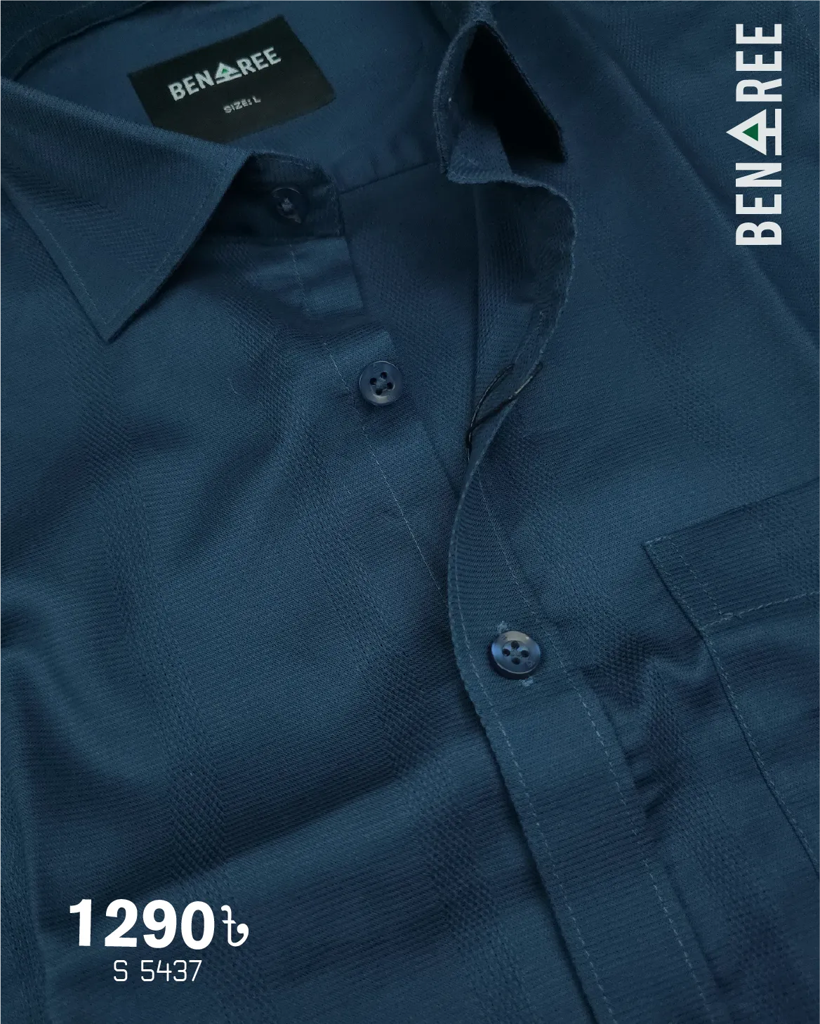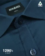 Navy blue color formal shirt made from breathable cotton. On color horizontal sprint on the body.