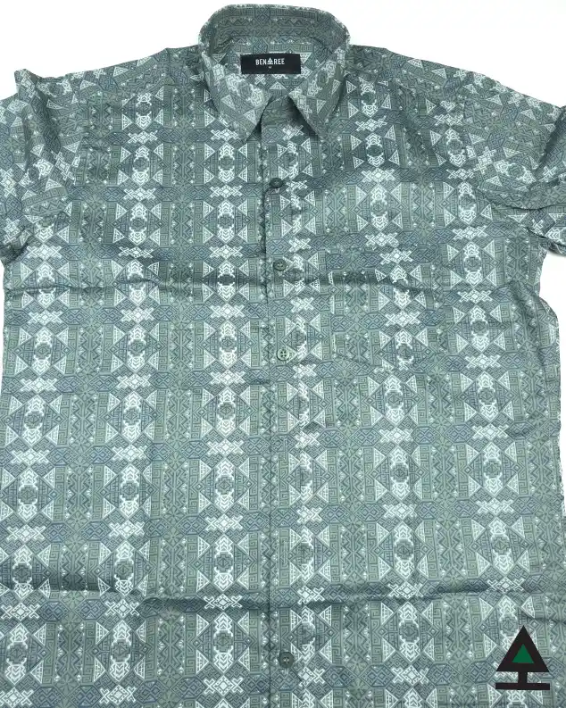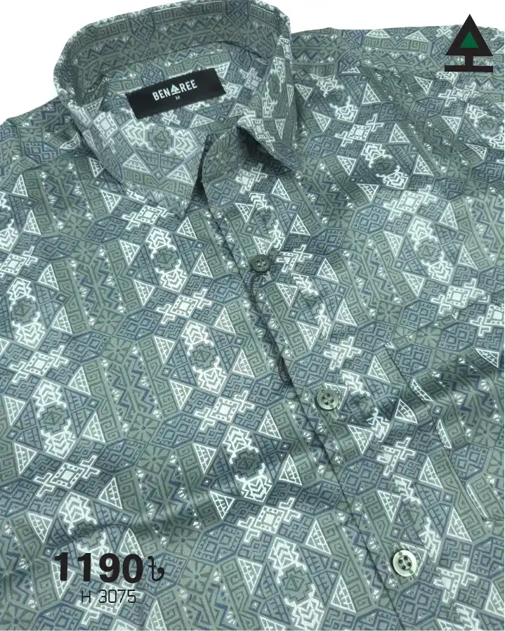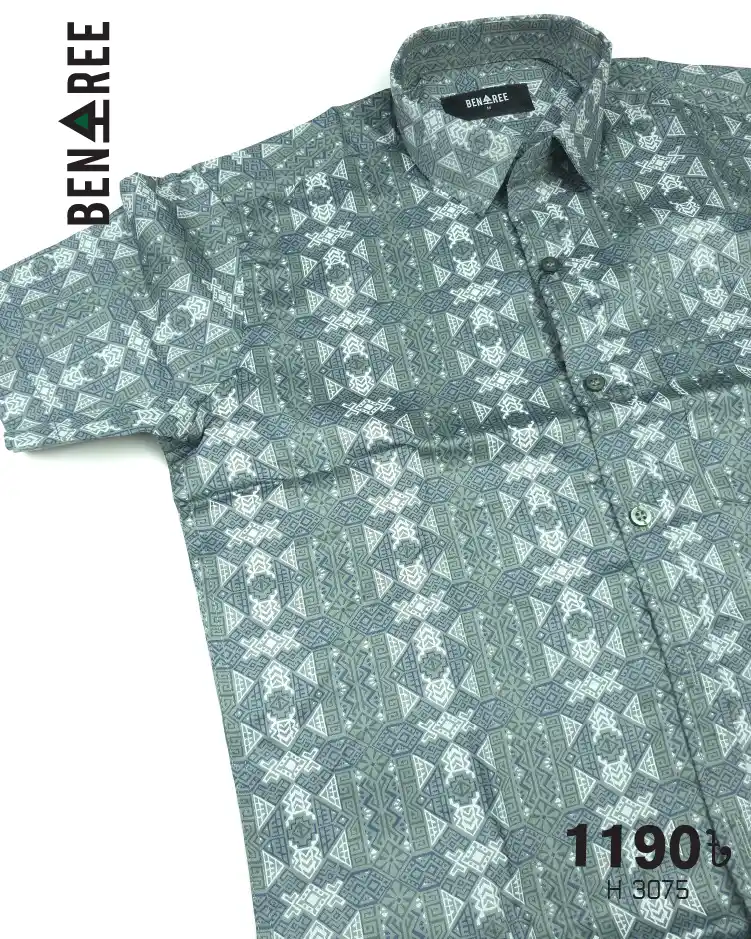 All over print on greenish grey color regular collar half shirt