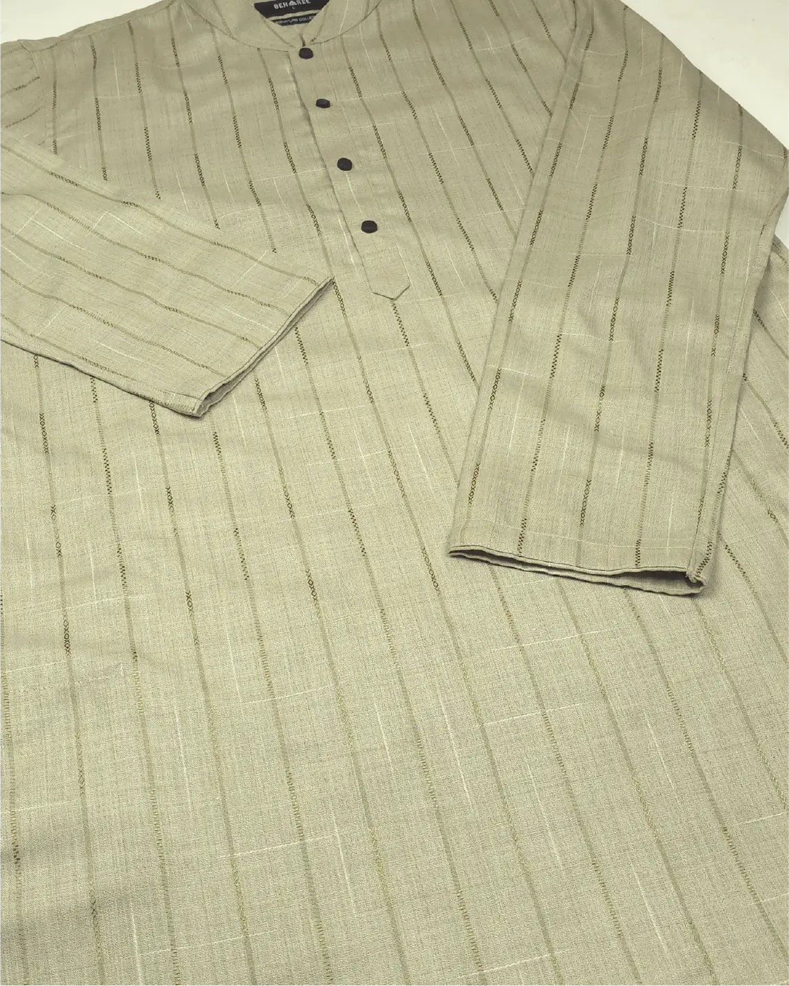 Designed with subtle work on all over the body, this Panjabi offers a refined festive look but you will not say this heavy work.