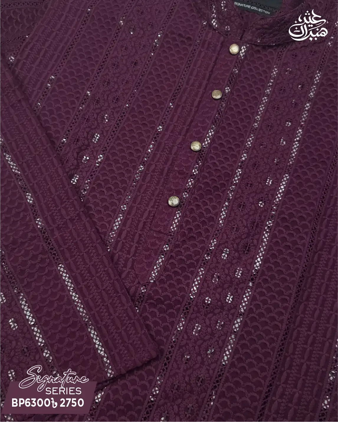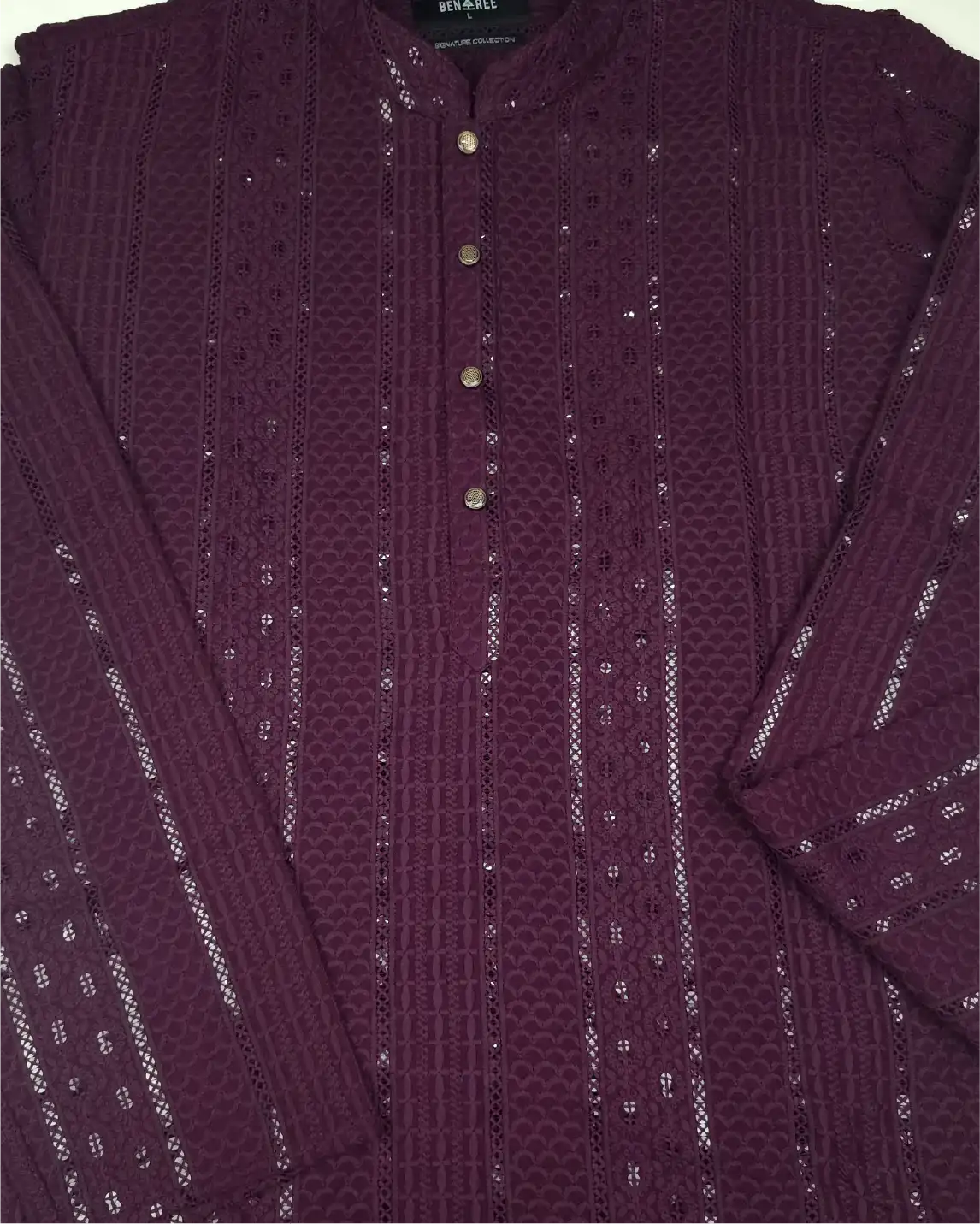 Decorated with fine sequence (sequin) work, this Panjabi brings festive glamour while maintaining a balanced ethnic appeal.