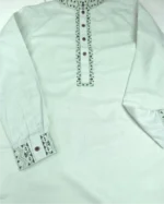 This Panjabi features tasteful embroidery on the neckline and cuff area, adding a touch of clean craftsmanship without overpowering the design.