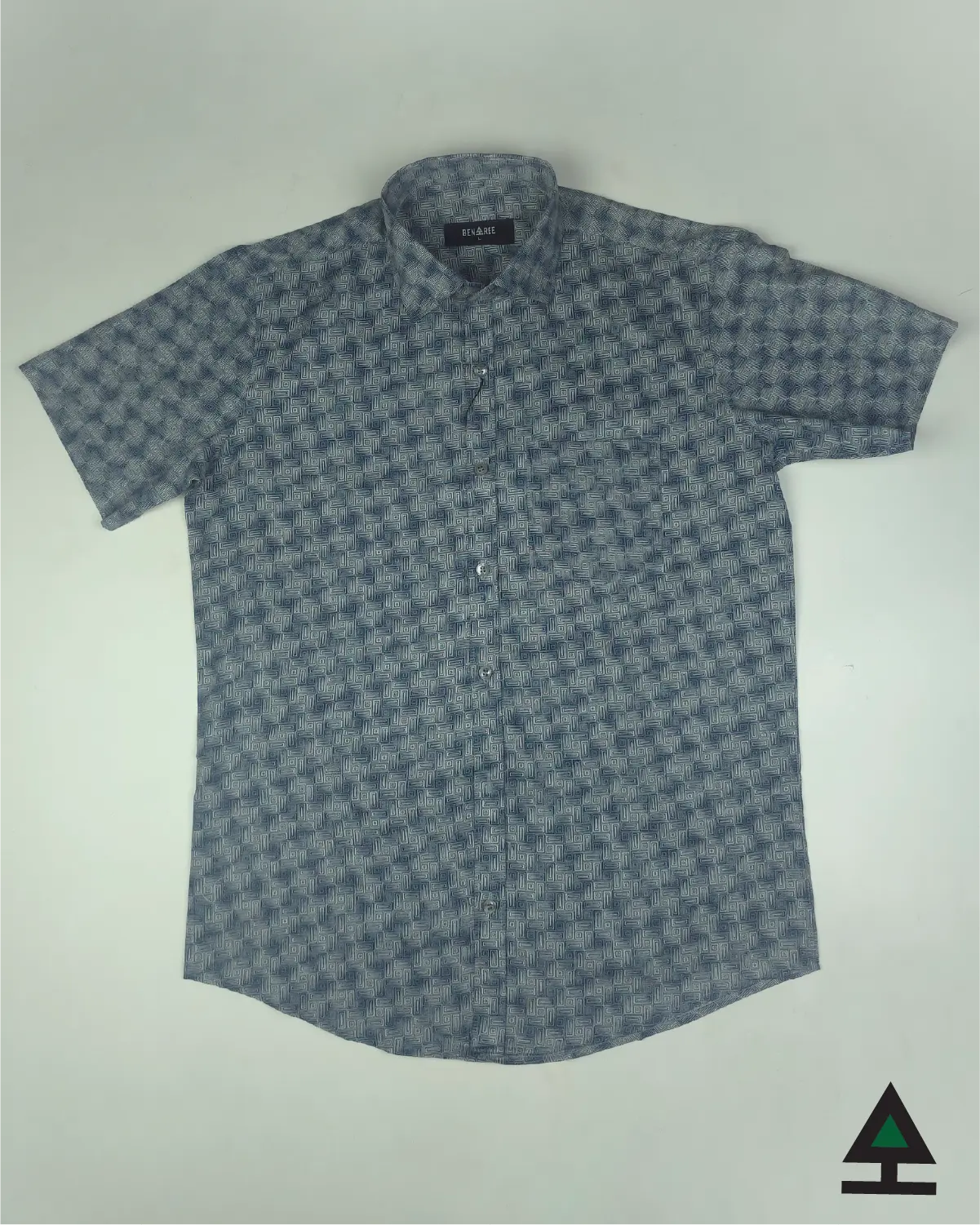 Navy Blue & Off White Half Sleeve Shirt- 23H 3113