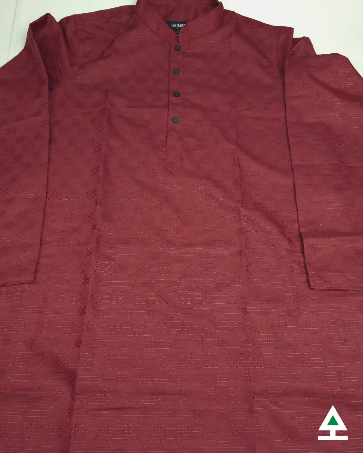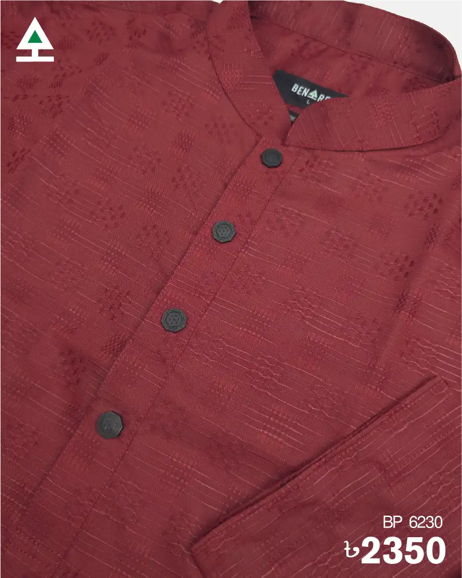 Sophisticated on color design on maroon color panjabi. Black color metal push button on the plates.
