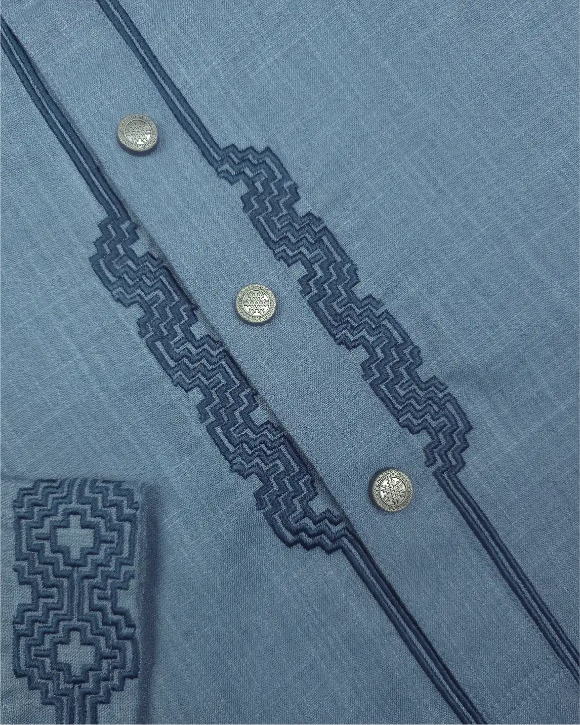 Designed with embroidery accents on cuff, plate & collar area, this Panjabi offers a refined festive look without excessive detailing.